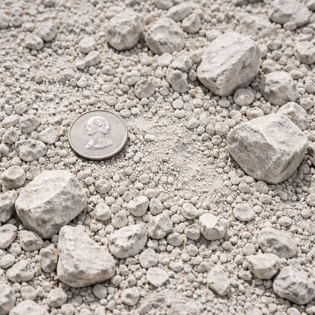 Fine crushed limestone screenings (0 to 1/4") for leveling, paver base, concrete production, and finish grading. Compacts to a smooth, firm surface.